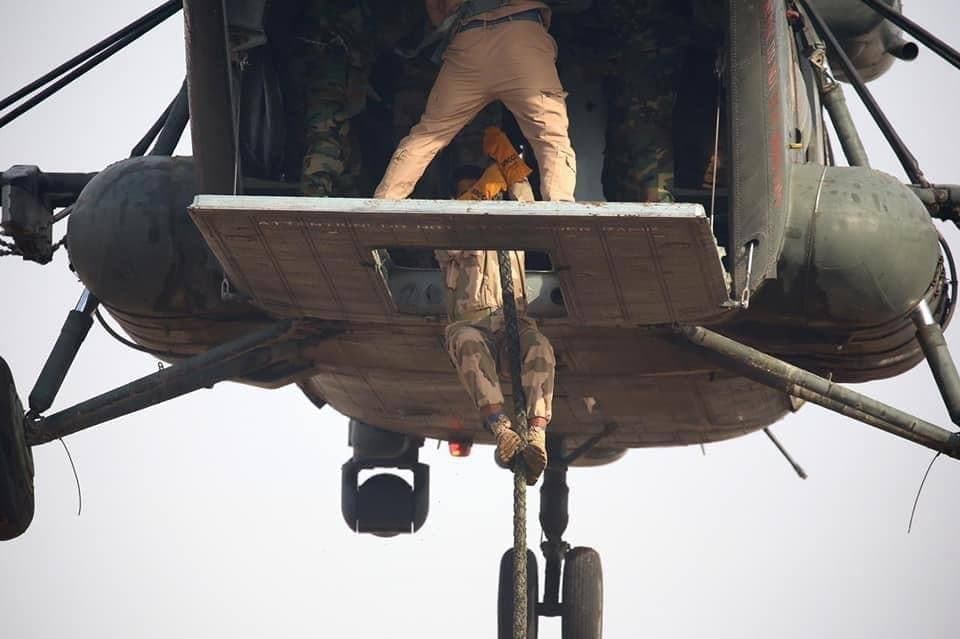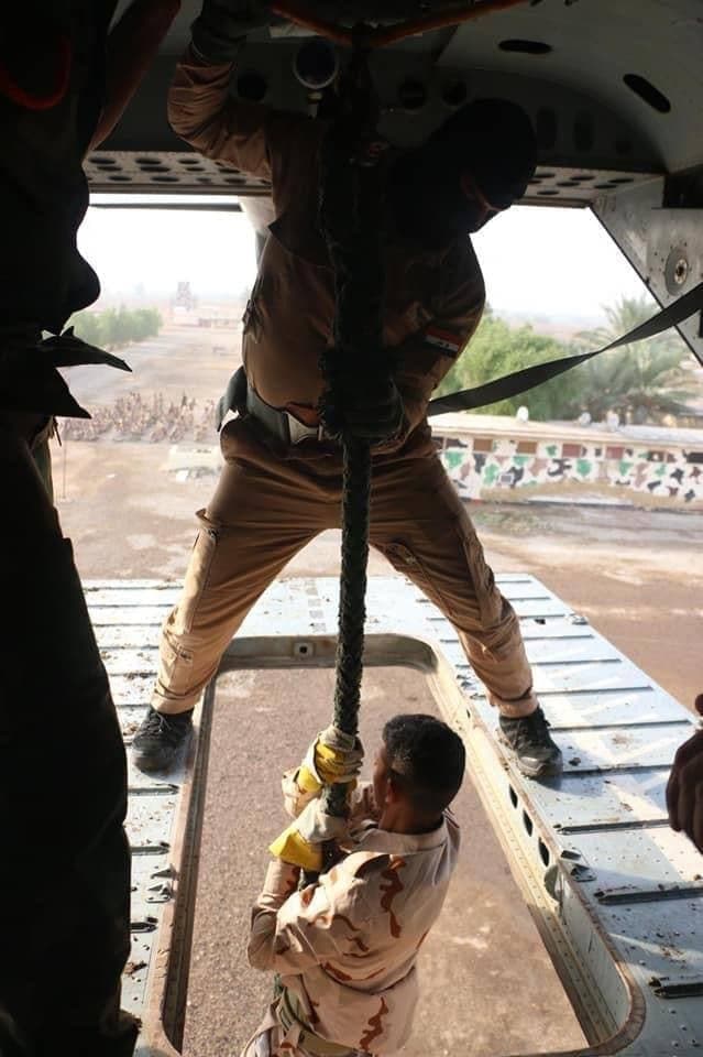 إنزال جوي بالحبال ينفذه أبطال فرقة العباس خلال تمارين القوات الخاصة