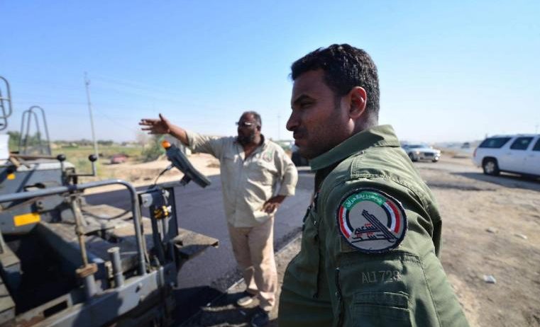 واصلت مديرية الهندسة العسكرية، اليوم الأربعاء، لليوم الثالث على التوالي اكساء طريق كوت – بغداد ضمن حملة سمير صبيح الخدمية.