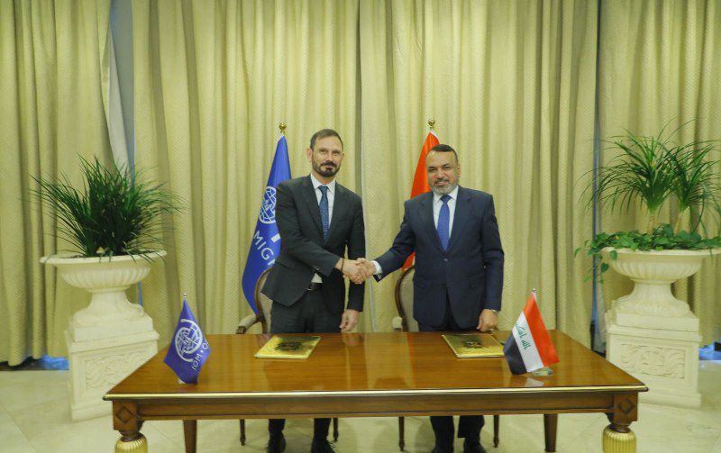 وذكرت وزارة العمل في بيان تلقى “العراق اولا” نسخة منه، أن “وزير العمل والشؤون الاجتماعية أحمد الأسدي وقع مذكرة تفاهم مع المنظمة الدولية للهجرة (IOM) في مجالات العمل والتدريب وتحسين سبل العيش، وذلك خلال لقائه رئيس بعثة المنظمة في العراق باسكال رينتجينز والوفد المرافق له، بحضور رئيس هيئة الحماية الاجتماعية، والمدير العام لدائرة العمل والتدريب المهني”.