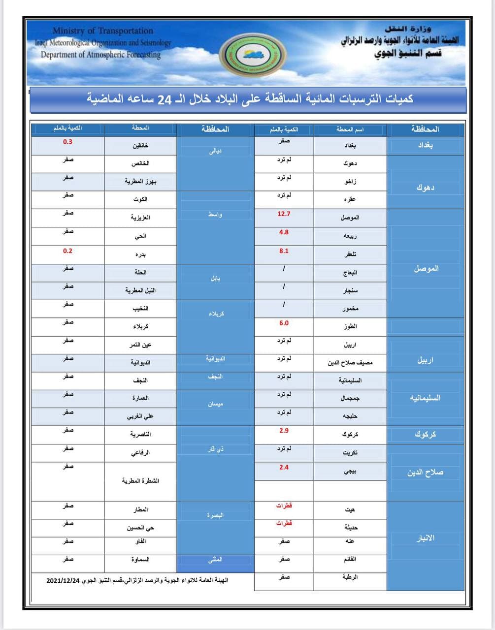 الأنواء الجوية تعلن حالة الطقس في البلاد للأيام المقبلة