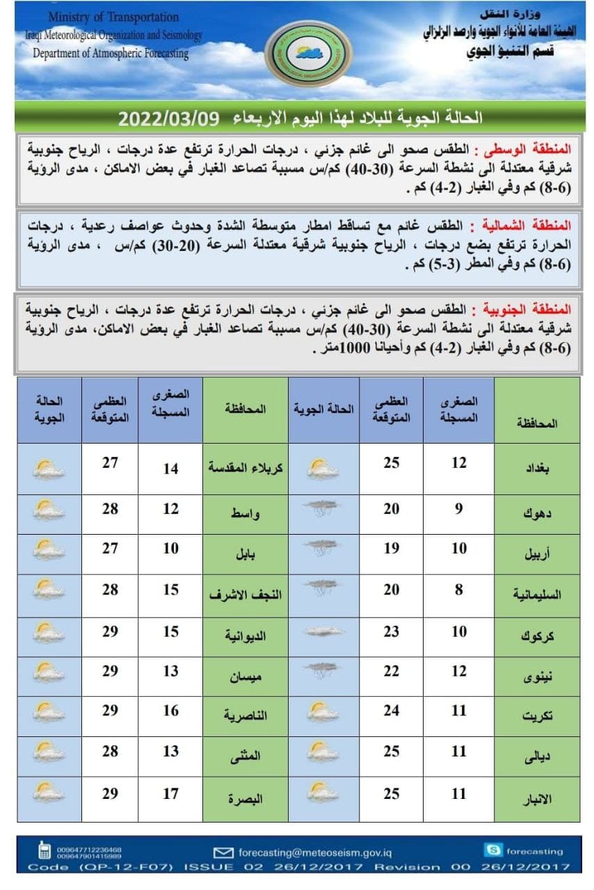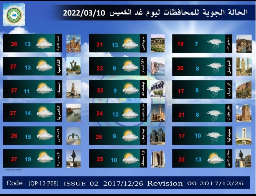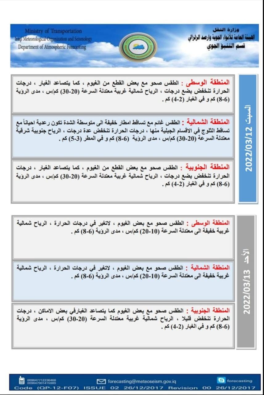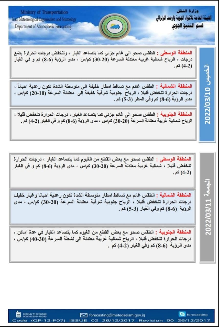 الأنواء الجوية تعلن عن حالة الطقس في البلاد للأيام المقبلة