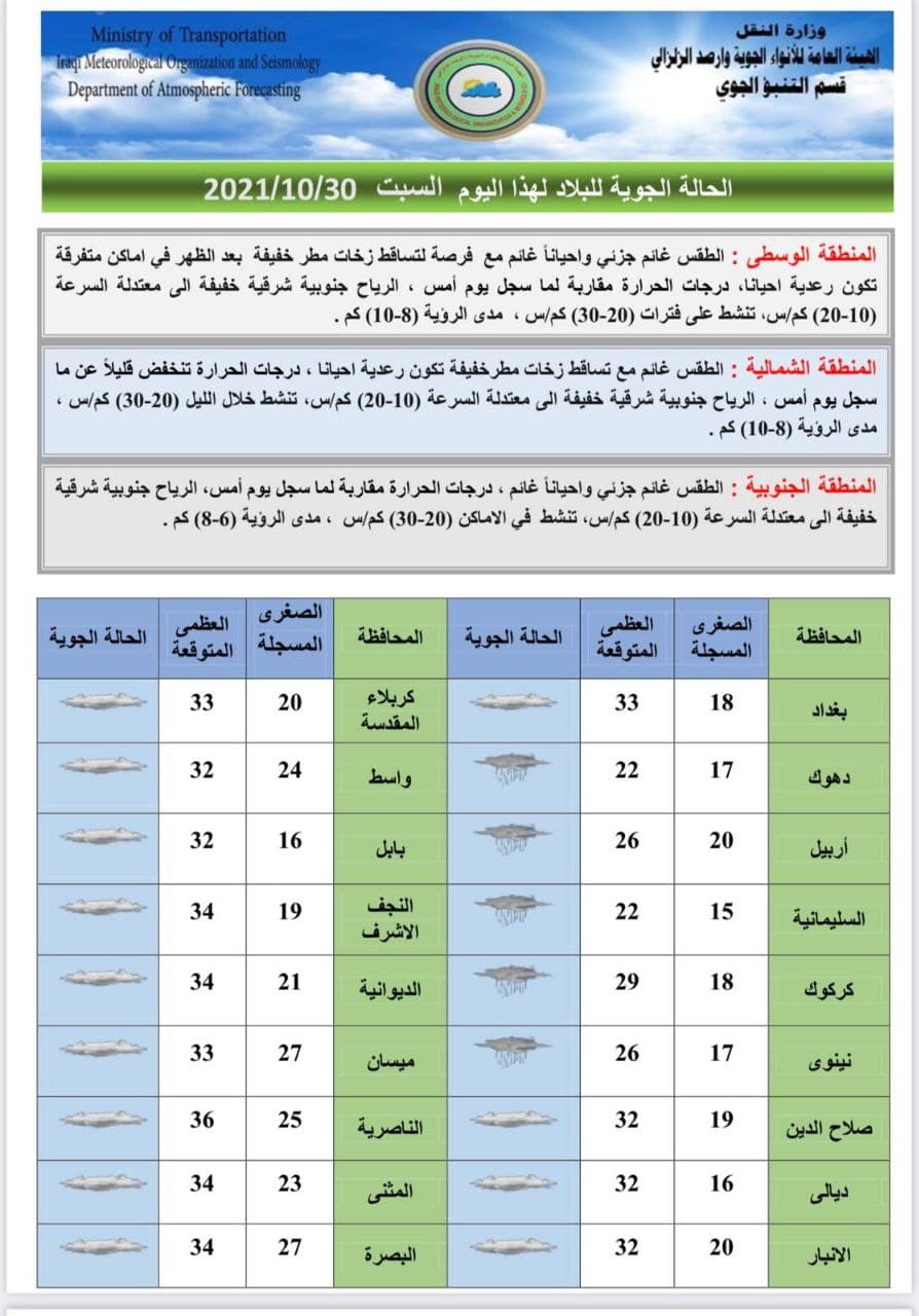 كشفت الهيئة العامة للأنواء الجوية والرصد الزلزالي، اليوم السبت، حالة الطقس في البلاد للأيام المقبلة، فيما توقعت هطول أمطار وعواصف رعدية في الأيام الأربعة المقبلة.
