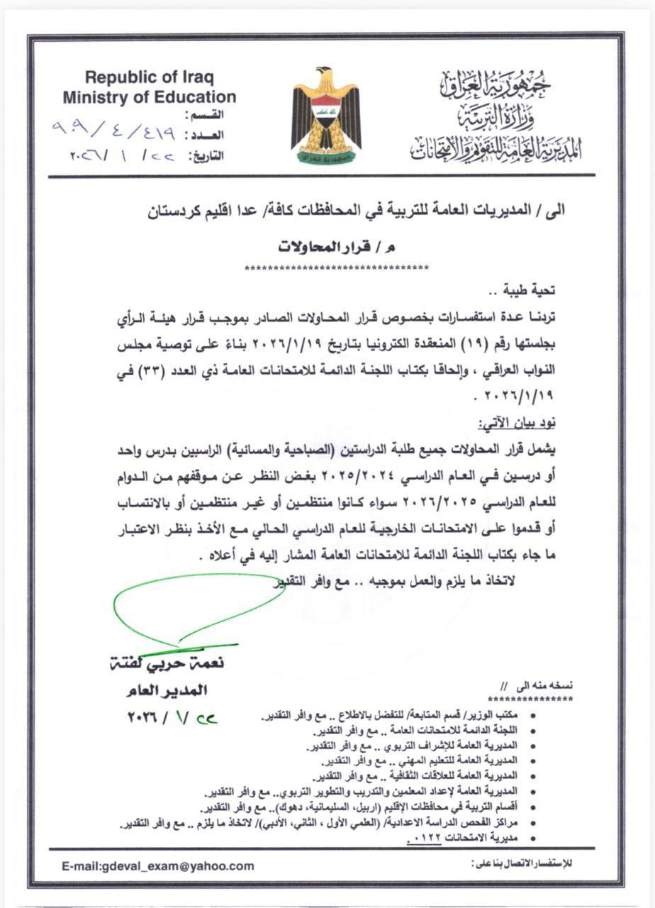التربية تكشف عن تفاصيل جديدة بشأن قرار المحاولات (الوثيقة)