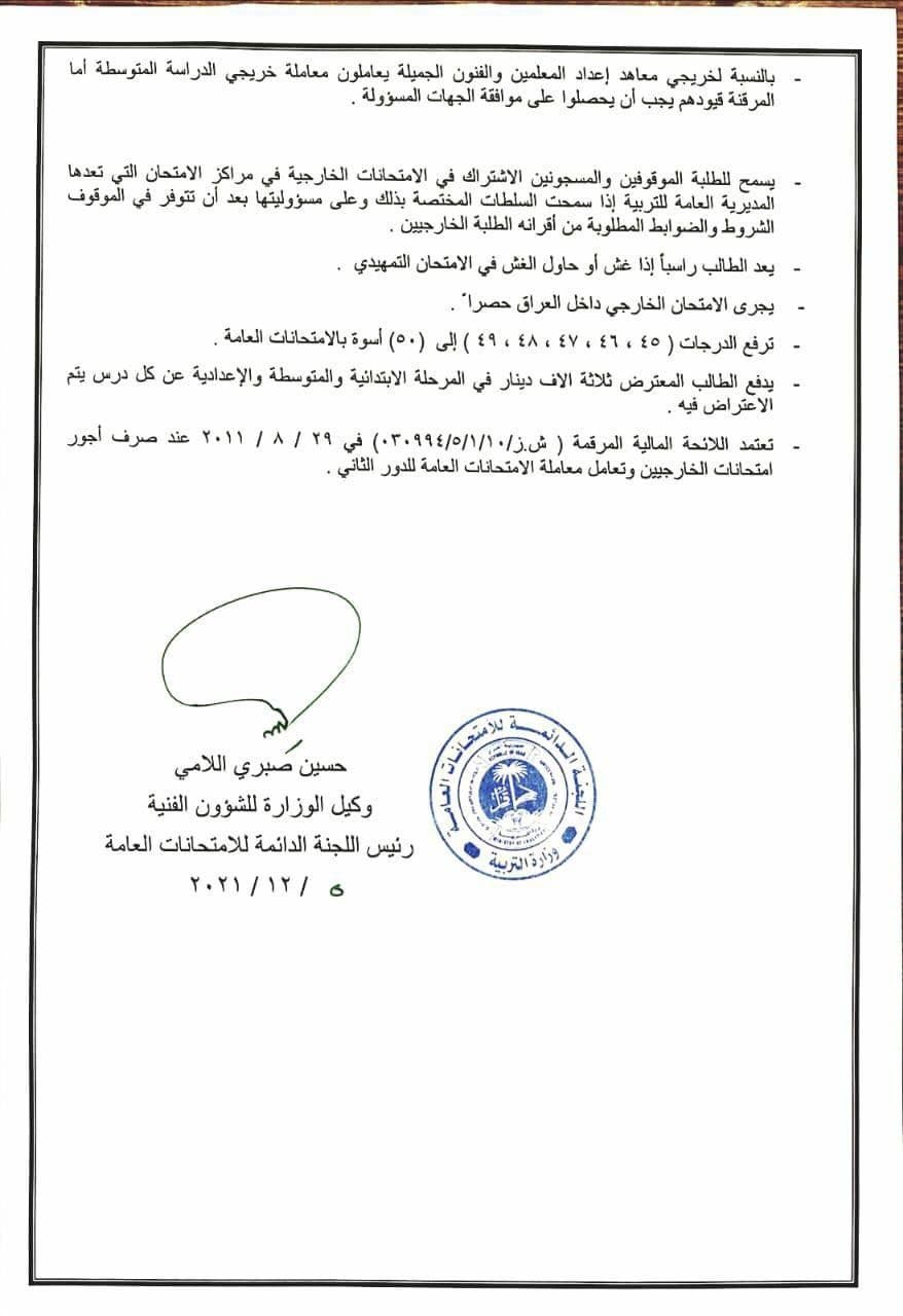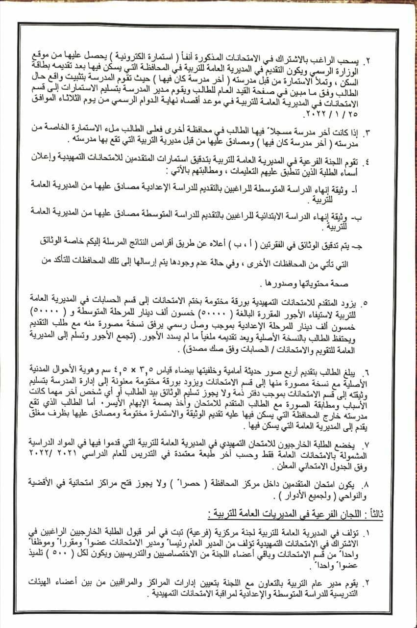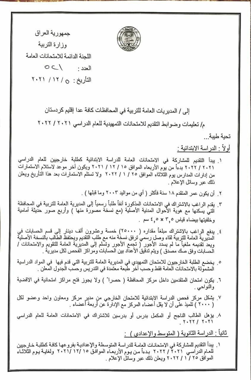 وبحسب وثائق حصل “العراق أولاً” على نسخة منه “نص تعليمات وضوابط التقديم للامتحانات التمهيدية: