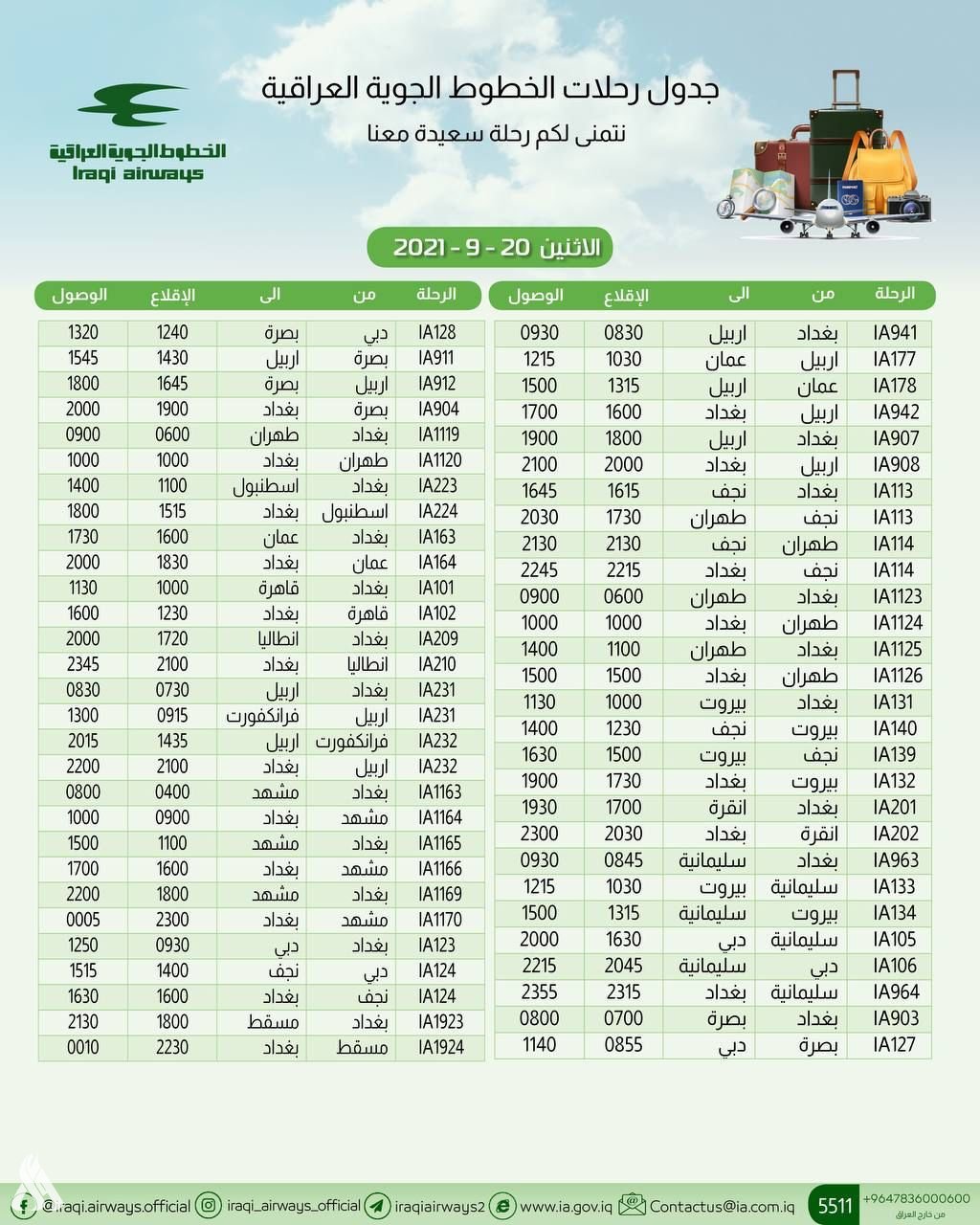 كشفت الخطوط الجوية العراقية، اليوم الأحد، موعد رحلاتها ليوم غد الإثنين.