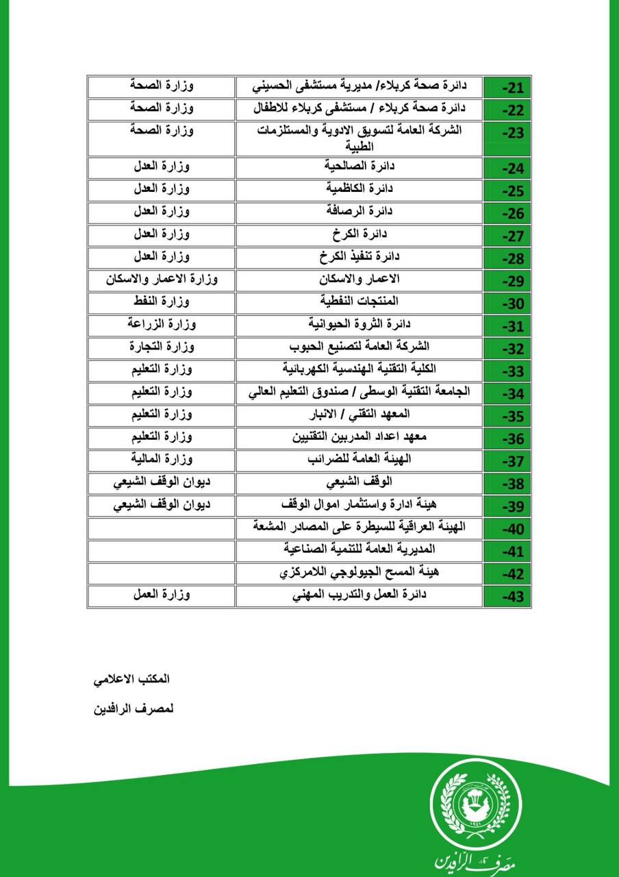وأشار، إلى أن “الدوائر التي عملت بهذا الإجراء هي (دوائر وزارة الداخلية – مديرية صندوق شهداء الشرطة – مديرية شؤون الجوازات / بغداد – ديوان الوزارة) (دوائر وزارة التربية – المديرية العامة للشؤون المالية – المديرية العامة للتدريب والتطوير التربوي – مديرية التعليم العام والأهلي والأجنبي – مديرية المناهج الدراسية) (المديرية العامة للتنمية الصناعية – دائرة صحة كربلاء / مركز الدائرة – ديوان الوقف الشيعي – هيئة المنتجات النفطية – الإعمار والإسكان)”، مؤكداً أن “تفعيل الجباية مستمر. وتزداد وتيرتها في العديد من دوائر الدولة”.