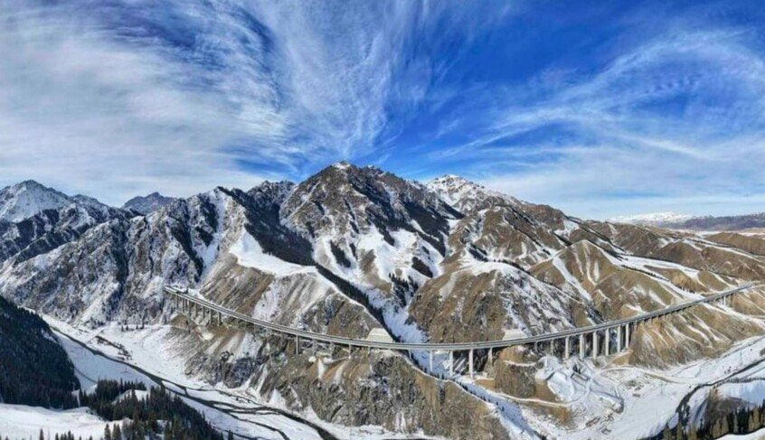 ويمر النفق، الذي يبلغ طوله 22.13 كيلومتراً، عبر جبال تيانشان بوسط منطقة شينجيانغ الويغورية ذاتية الحكم بشمال غربي الصين، ويقلص زمن عبور الجبال، الذي كان يستغرق عدة ساعات، إلى نحو 20 دقيقة فقط.