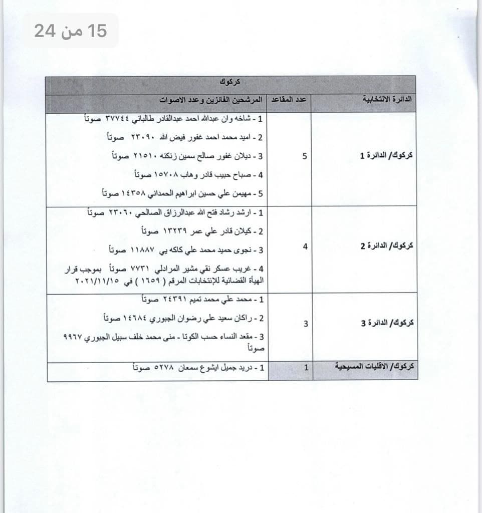 وأضاف، أن “الطعون أحدثت خمسة تغييرات في بغداد ونينوى وأربيل وكركوك والبصرة”، مبيناً أن “عدد الناخبين الكلي بلغ أكثر من 22 مليونا”.