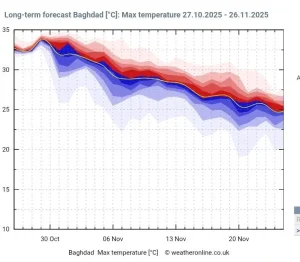 وقال عطية، في منشوره، إن “النماذج الجوية، تشير إلى غياب الجبهات الهوائية الباردة عن أجواء المنطقة خلال الفترة المقبلة، مما يعني أن الانخفاض بدرجات الحرارة سيكون تدريجياً وطبيعياً مع تقدم الموسم، دون أي موجات باردة أو تراجع حاد”.