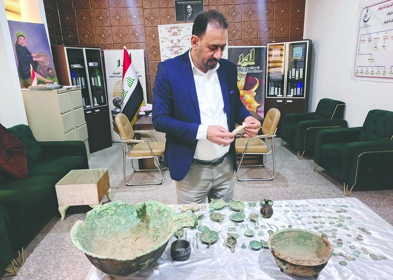 ولفت الرميض، إلى استلام إناءين من النحاس يستخدمان لطهي الطعام وخزن المواد الخاصة في عملية الطبخ، مناشداً المواطنين للتعاون مع مفتشية الآثار بالإبلاغ عن سرّاق القطع الأثرية من ضعاف النفوس الذين يقومون بنبش المواقع الأثرية غير المؤمَّنة بالحراس.