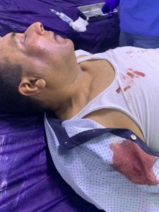 وأوضح، أنه “مصاب بكدمات في الوجه والرقبة بواسطة الأيادي أثر مشاجرة مع شخصان بسبب خلاف شخصي”.