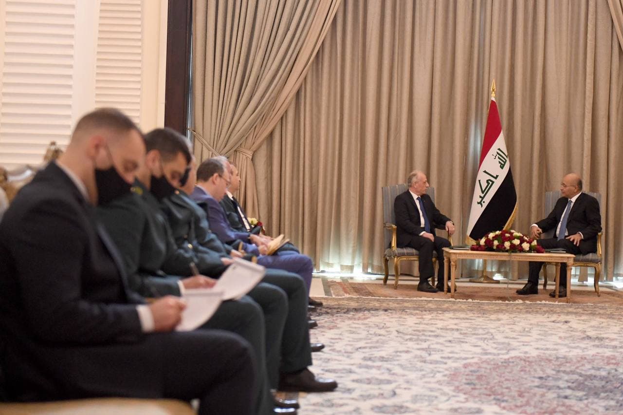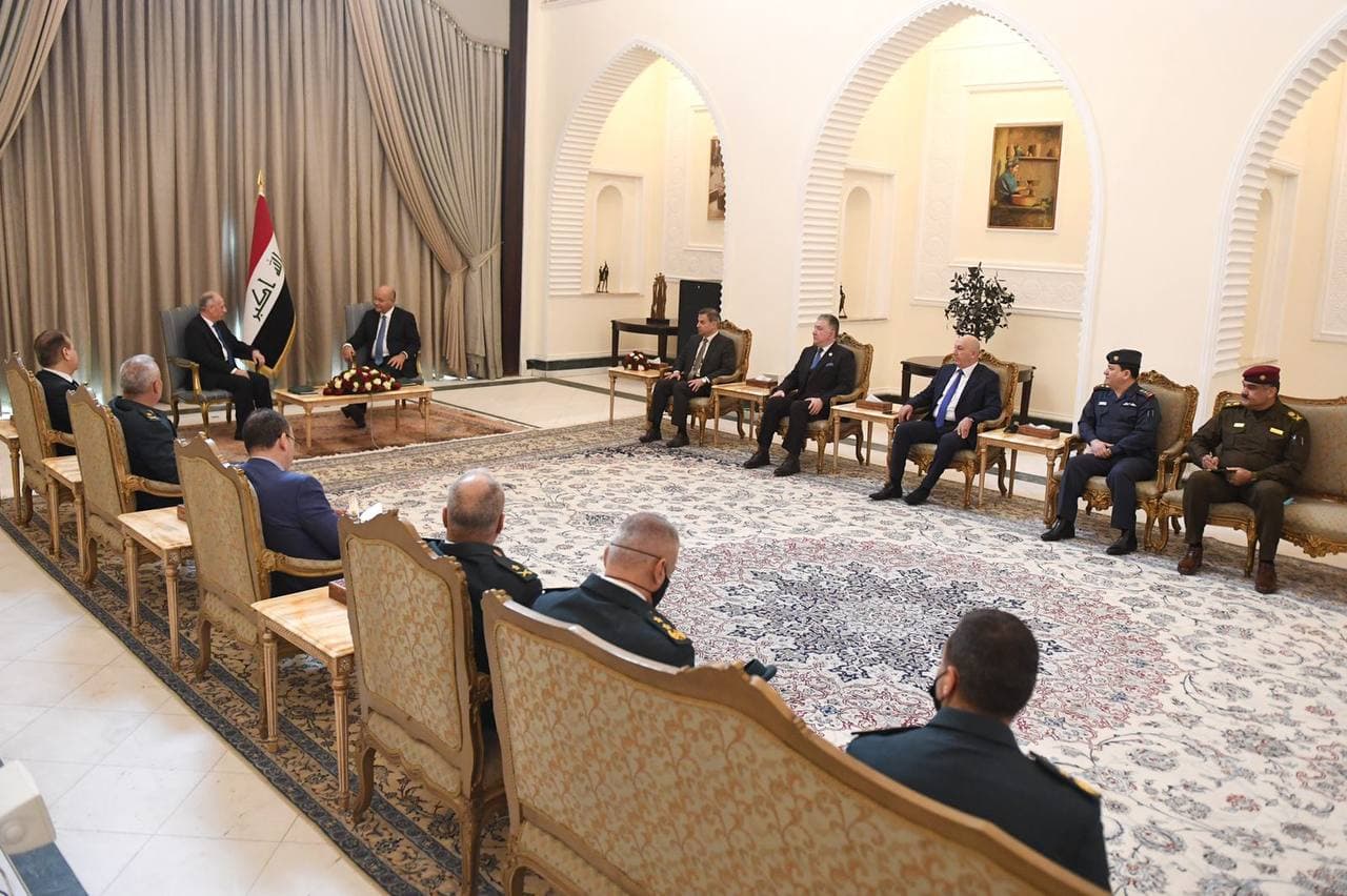 استقبل رئيس الجمهورية برهم صالح، اليوم الثلاثاء، في قصر السلام ببغداد، وزير الدفاع اللبناني موريس سليم.