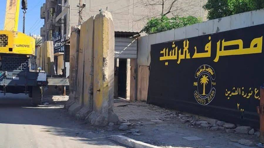 عمليات بغداد: رفع الكتل الكونكريتية حول مصرف الرشيد في بغداد