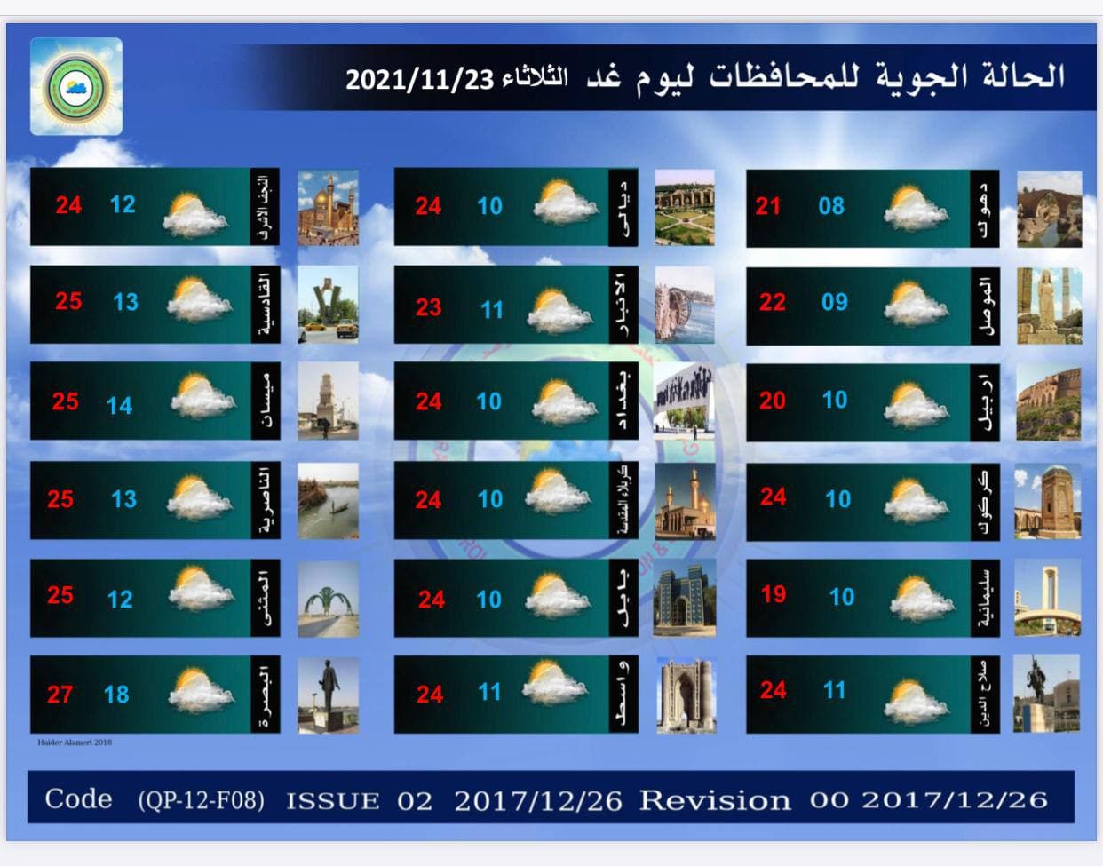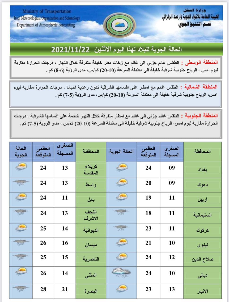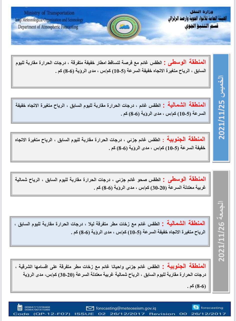 هيئة الأنواء الجوية تعلن حالة الطقس في البلاد للأيام المقبلة